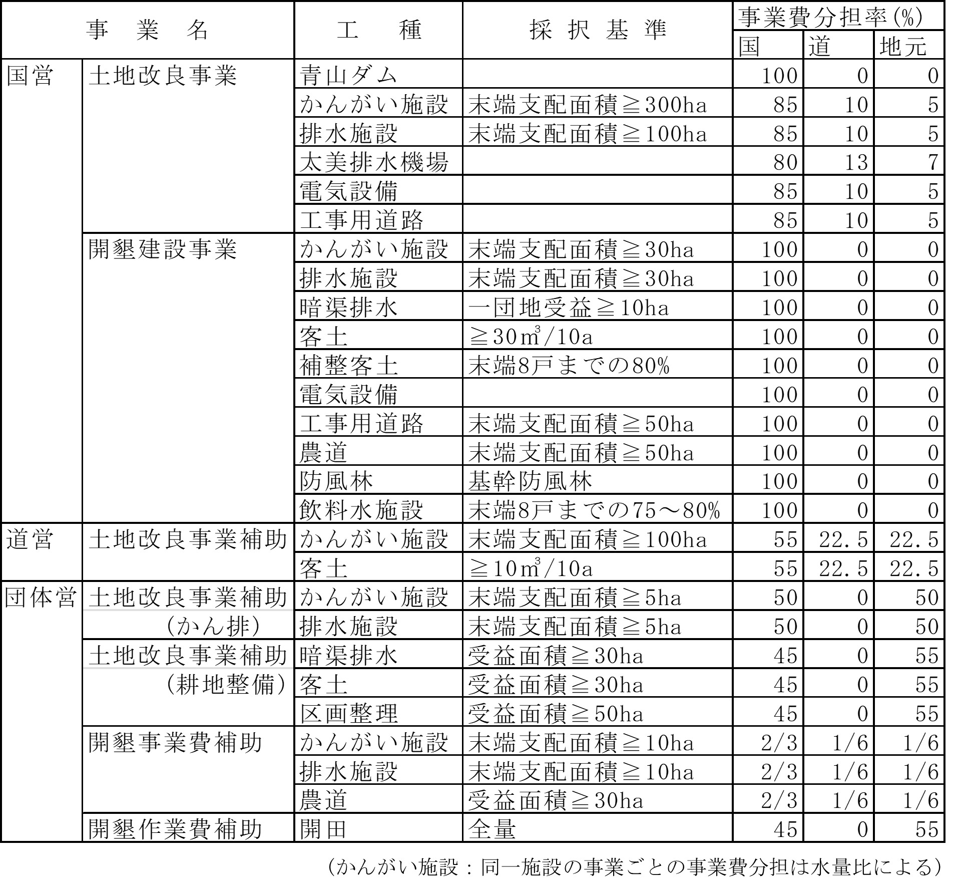 当別川上流(平成24年(2012年)に完成した当別ダムよりさらに上流)に設ける青山ダム(昭和37年度(1962年度)に完成)は、国と道・地元との事業費分担を基本とする土地改良事業により築造されるものであったが、全額国費で整備することになった。これは、受益に広大な未墾地を抱えていることと、昭和26年(1951年)より石狩川水系内で進められているかんがい用の水源ダムと、河川総合開発で建設される多目的ダムとの負担の均衡などが考慮されたことによるものである。