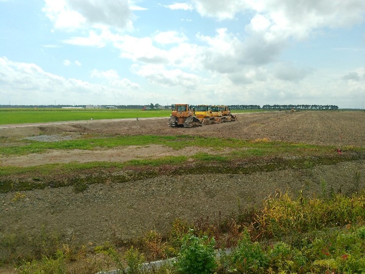 本事業では、客土は短期間で多量に行う必要があるため、機械施工で対応することにした。