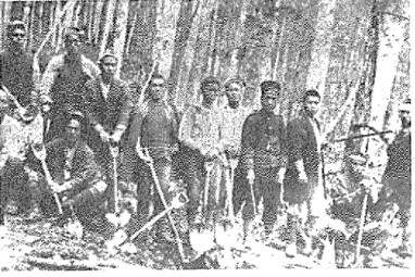 当時の鉄道は、和寒まで開通していたが、当地、士別に行くには、大木や熊笹が生い茂る薄暗い森の中を細い狩り分け道を歩き、体力のない女性や子供たちは丸太舟で川を下り、士別に上陸したそうだ。
