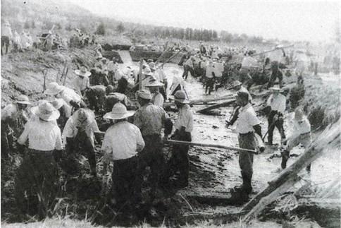 しかし、この間、多くの水利施設の整備が進み、寒冷地農業の基礎固めに入り、ようやく軌道に乗るとみられたころの昭和6~10年と毎年連続する冷害に遭遇し、一部に水田経営(水田廃止)を断念する動きが生じ、更に、昭和12年から打ち続く戦争により資材、労働力不足から基盤整備は頓挫、休止状態に入り、水田面積の減少が進んだまま敗戦を迎え、極度の食料不足に陥った。