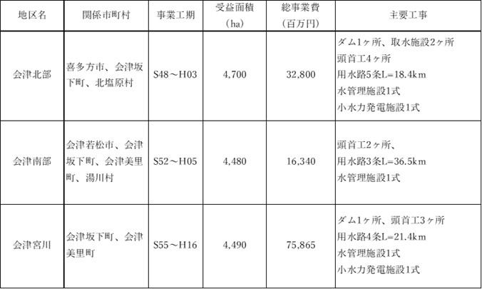 一方、会津盆地でも、水不足が現れていたものの、国営で事業を行う地域としては優先順位が低かったものと考えられる。
