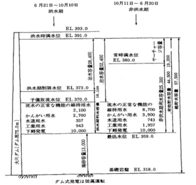 大川ダムの計画は、阿賀川の度重なる洪水の発生を契機として、河川全体の治水計画の見直しが行われ、その改修計画の一環として直轄によるダムの施行となったもので、洪水調節機能のほか、水道用水や工業用水を確保するとともに、会津盆地の阿賀川沿岸の農地に対する農業用水の補給、ダム式及び揚水式発電を行うものである。