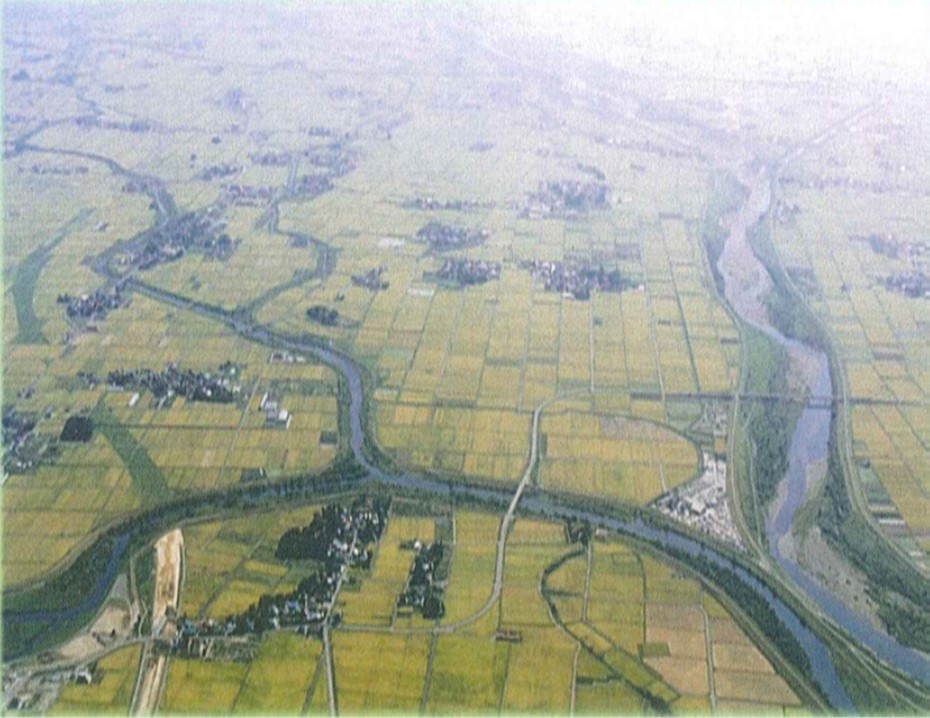 これらの河川は、山地からの流出により扇状地や平均標高200mの肥沃な沖積平野を造ったが、その後も川筋が定まらず、氾濫を繰り返し、人々は水の脅威と戦い永年稲作を中心とした営農を展開してきたのである。