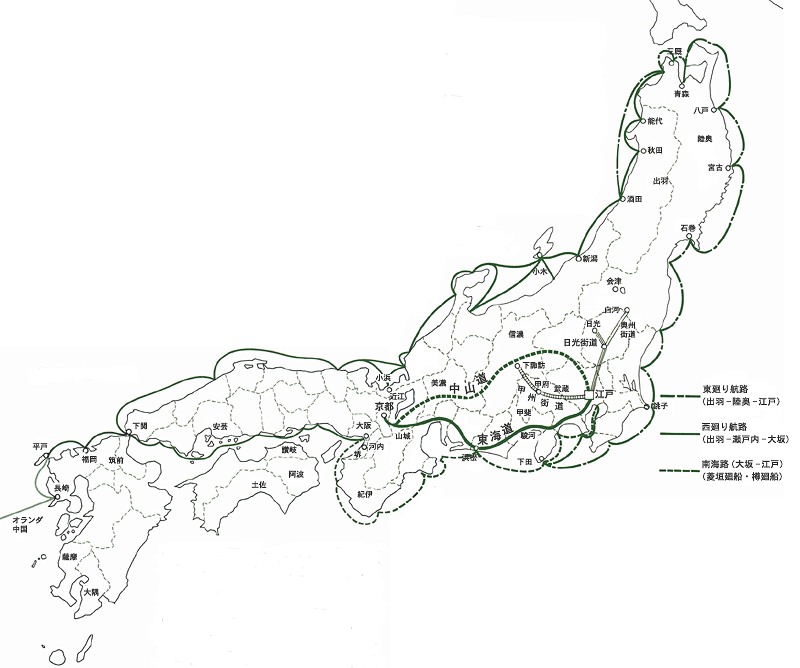 領主の年貢米販売を契機に、廻船などの交通路が整備され、年貢米以外の農作物の流通も可能となる。江戸・大阪・京都という大市場へ運搬できるようになり、中央市場の声価を得て市場と産地が結びついて専門化が進み、特産地が形成された。近世においてはこうした動きが拡大・一般化し、都市の発達と農村の貨幣経済化によって、ますます促進されたのであった。さらに、領主の殖産・専売政策と結びついて発展したところも多い。