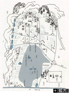 和泉国(大阪府)九条家領日根荘は、荒地の開発を九条家自らが行った重要な荘園であった。正和5{1316)年の日根野村絵区には、「荒野」が広がっているが、北側の丘陵縁辺を中心とした溜池の周囲には「古作」「本公田」があり、古くから開発が進んだことを表している。一方、南側の犬鳴川(大井関川)からの取水が行われ、周辺の耕地のかんがいと池水の補給に役立っていた。山沿いの二つの神社に用水の名を冠していることからも、用水がいかに責重であったかがわかる。(宮内庁書陵部蔵〕