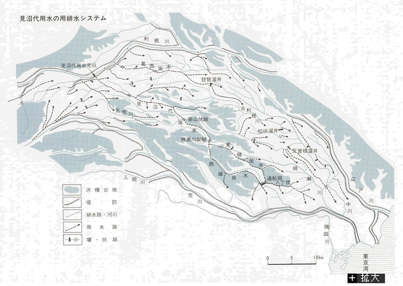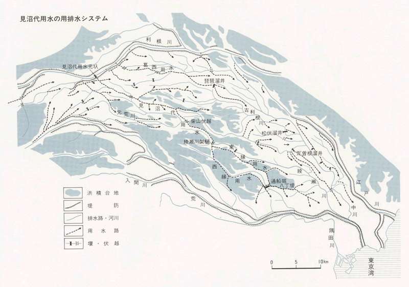 関東流から紀州流への転換の典型を、葛西用水の西側に開かれた見沼代用水にみることができる。