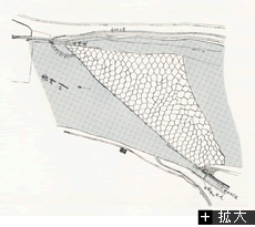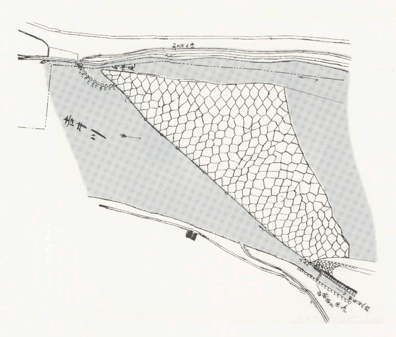 石張堰当時の田原堰(昭和40年ごろ)と古図(上)