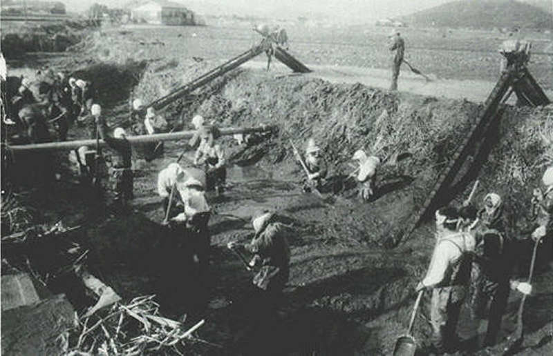 佐賀平野の風物詩の一つ、川浚えはクリークの貯留能力を確保するためにかかせない作業で、関係する村々の石高に応じて出役された。泥土は肥且天で水田へ客土された。