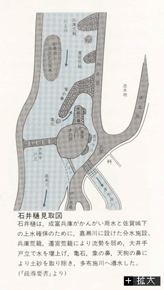 佐賀平野を縦横に走るクリーク。少ない水を融通し効率的に使うクリークの仕組みは、近世初期にはすでに形づくられたが、こうした水利体系は佐賀藩の武将、成富兵庫茂安が基礎をつくったものといわれている。雨だけが頼りで水が不足がちの佐賀平野への用水補給に思いをめぐらせた彼は、まず地域に不規則に介在するクリークを樋管などにより相互に連絡した。そして、嘉瀬川の水を石井樋により多布施川を通じて城下に導水したほか、横落水路や市ノ江川からの用水の末流もクリークに吸収し、クリークの水源として河川を結びつけた。
