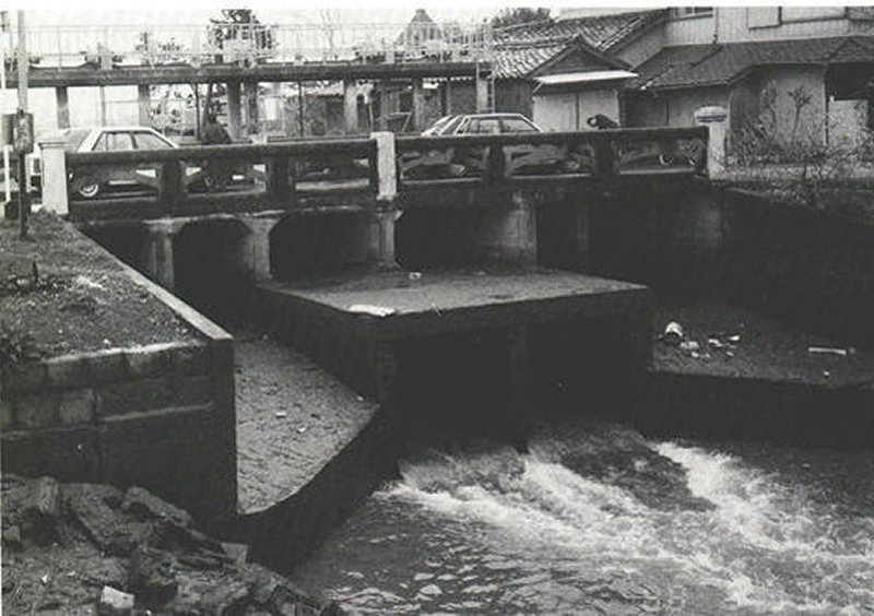 また、横方向に流れる佐賀江には、その上流部からの内水を一旦受け止める機能をもたせ、次に、潮が引けば迅速に排水するよう、これにつながる縦水路である新川を直線化した。