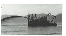 排水路を堀削するポンプ浚渫船
