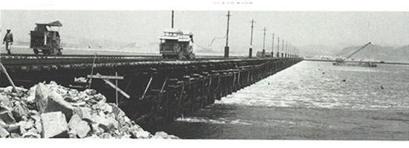 海水を遮断する潮止工(笠岡湾干拓)