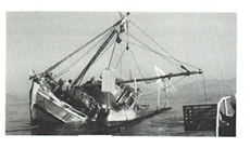 捨石を行う転倒式石運船