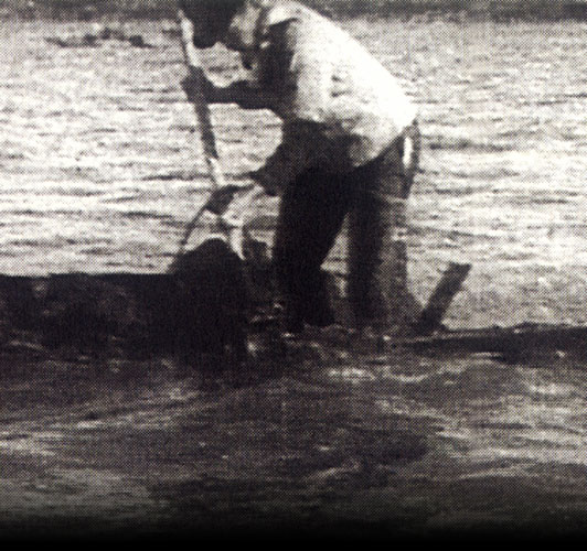 The man in the above photograph is not fishing. The “game” he is loading on his boat is not fish but soil.