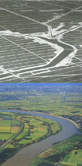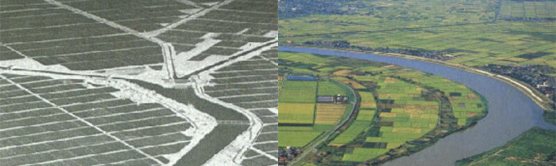Needless to say, paddy-farming requires huge amounts of water. The, wetlands along rivers were reclaimed and turned into farmland. People built canals or diversion weirs to draw water from rivers into their fields.