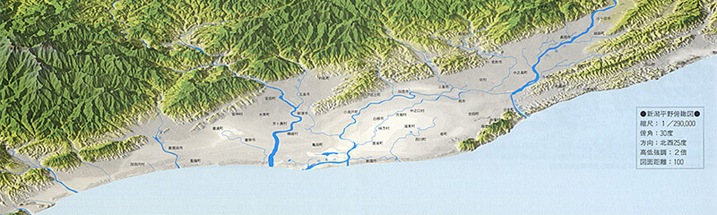 - Namely, we can see that the entire coastline is higher than the inland area. In short, this means that the Niigata Plain is shaped like a long and narrow bowl, otherwise more like a large lake than an ocean.