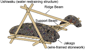Moreover, it was constructed in an astonishingly short time, only three months from start to completion. Azumino is harsh in winter. It was absolutely necessary to begin as soon as spring arrived and to finish before the rainy season. The total number of paid laborers was 67,000.