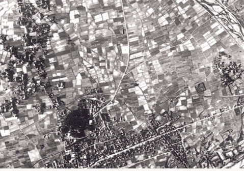 The photograph below is an aerial shot of the area around Hongo in Hotakamachi, taken in 1948. The channel running through the center is Jikkasegi. The beneficiary regions below the channel are the neatly rearranged paddy fields. What a difference between irrigated land and the non-irrigated! This photo shows vividly just how important Jikkasegi is to the region.