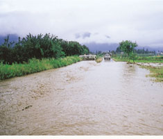For this reason, as drainage projects both national and prefectural are underway as well as improvement of Kurosawa dam and Yorozui River which is promoted by Nagano Prefecture. Originally, any rainwater in this region was drained off via the Yorozui River and Jikkasegi into the Karasu and Sai Rivers due to the bowl-shape of the entire zone. Due to these projects, the precipitation in this area will be drained off into the Azusa River as well, in order to disperse the drained water into the different river for the first time in history.