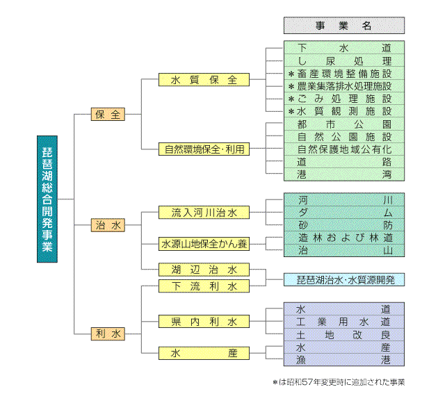 特に、下水道やゴミ処理施設の設置など、焦点が水量から水質へとシフトし、さらに公園や自然保護地域の公有化など、琵琶湖の環境面に配慮している点が注目されよう。